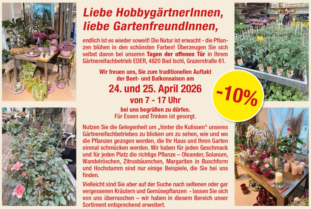 es geht wieder los, die Garten-Saison 2026 steht vor der Tür, der Grüne Daumen juckt! Die ersten Vorbereitungen dazu können schon getroffen werden. Wir, bei Blumen Eder haben wieder zahlreiche Aktionen (OÖ Gärtner) und Neuheiten für Sie vorbereitet.
